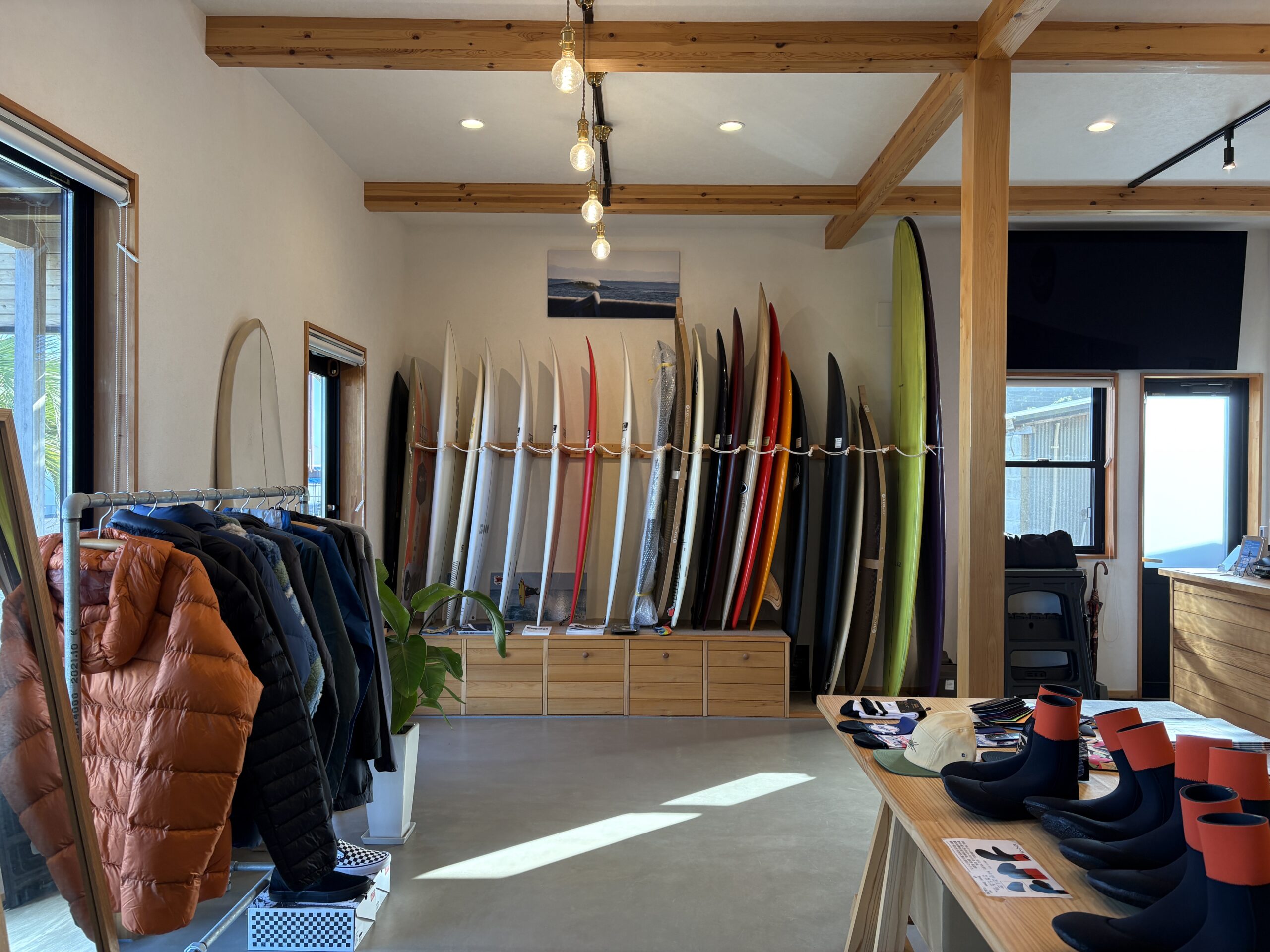国内外の厳選ブランドを取り揃えた店内は、海帰りにふらりと立ち寄りたくなる空間です。