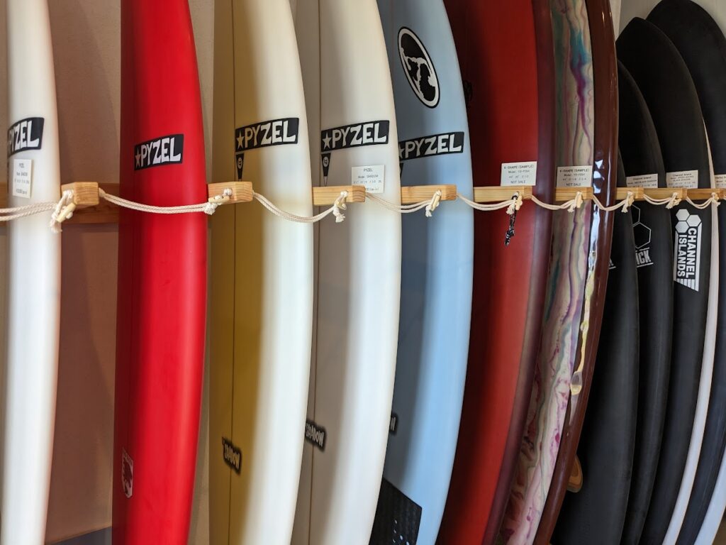 【A】いいえ、最初からすべてを買い揃える必要はありません。まずは当店の豊富なレンタルボードで様々なサイズを試し、海に慣れながらご自身のスタイルが明確になってから購入を検討していただくステップをおすすめしています。お客様のペースを大切に、じっくりとご相談に乗りますのでご安心ください。